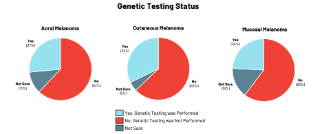Using patient-reported data from the RARE Registry, we have examined for the first time the use of genetic and biomarker testing in the medical journeys of participants diagnosed with cutaneous, acral, or mucosal melanoma.